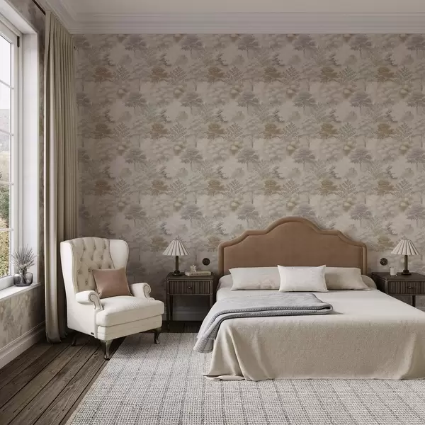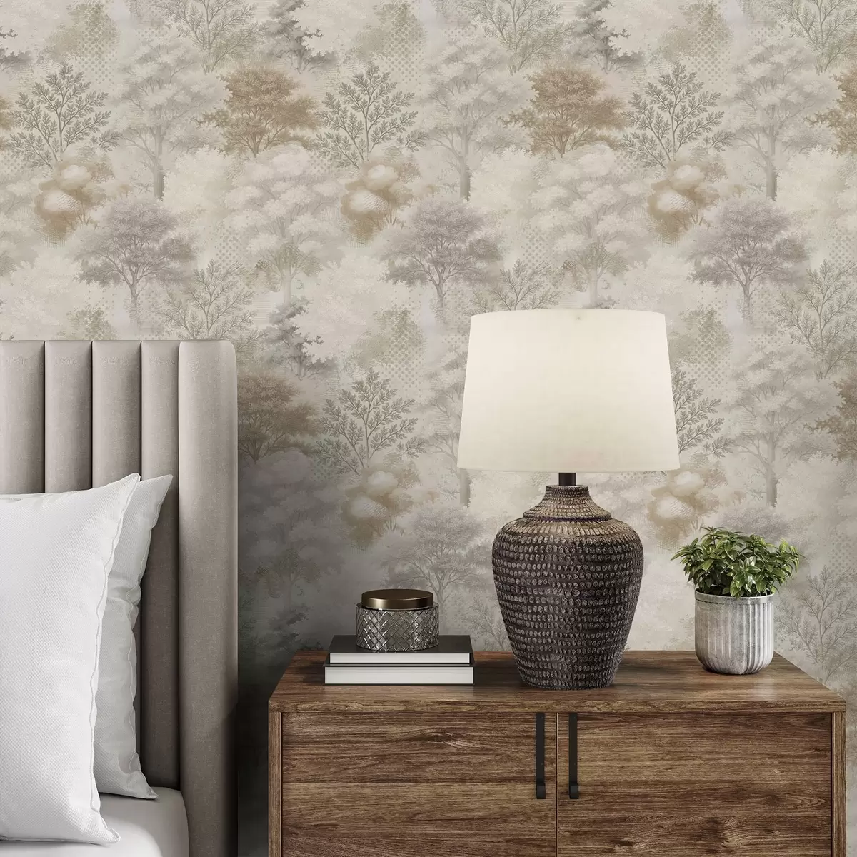 Tapeta Нежна шума у магли, меки беж-сиви тонови бр. a00785