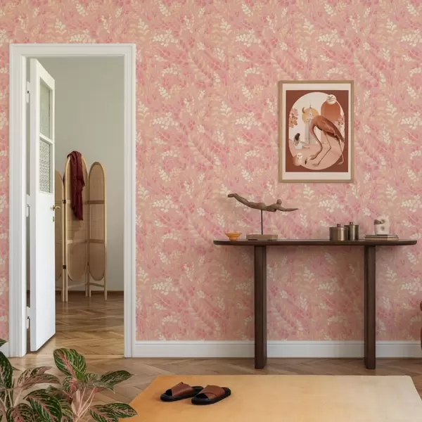 Tapeta Нежно ружичасто-бресквасто лишће са меким сјајем боје бр. a00799
