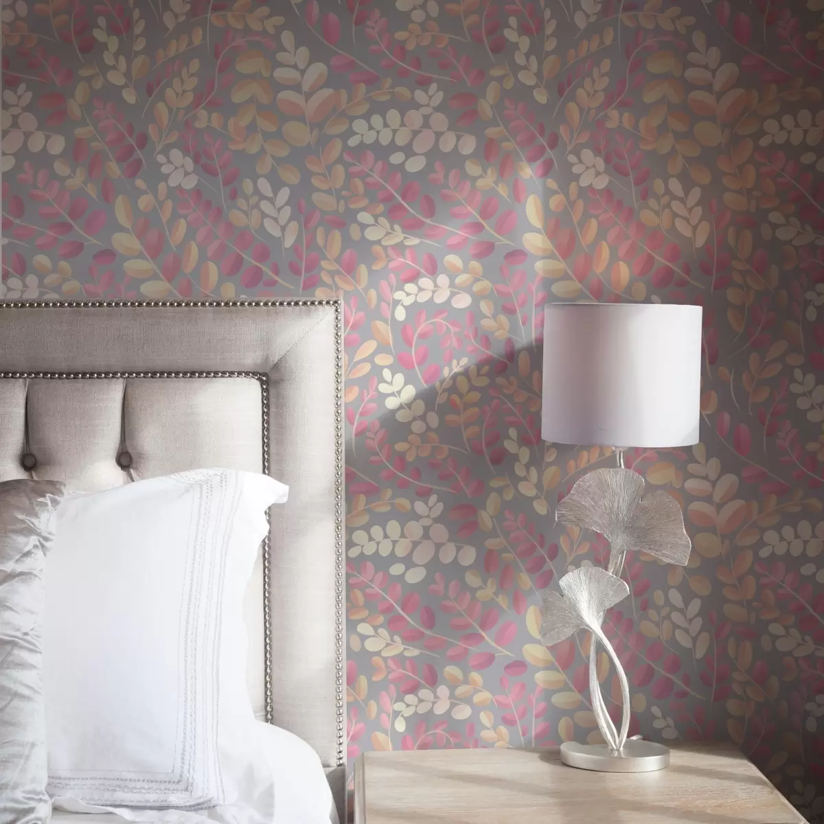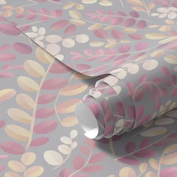 Tapeta Пастелне гране са ружичасто-бресквастим лишћем на сивој позадини бр. a00799v1