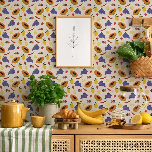 Tapeta Папаја, грожђе и лимуни — светла мешавина воћа бр. a00803