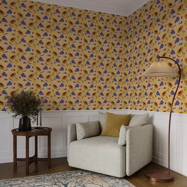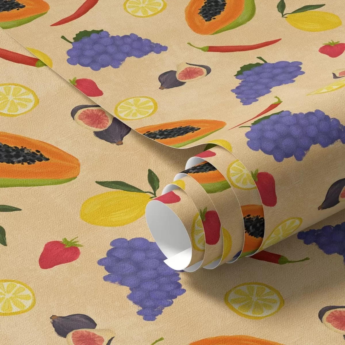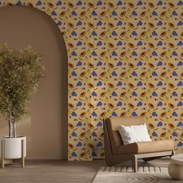 Tapeta Папаја, цитруси и бобице на богатој топлој позадини бр. a00803v1