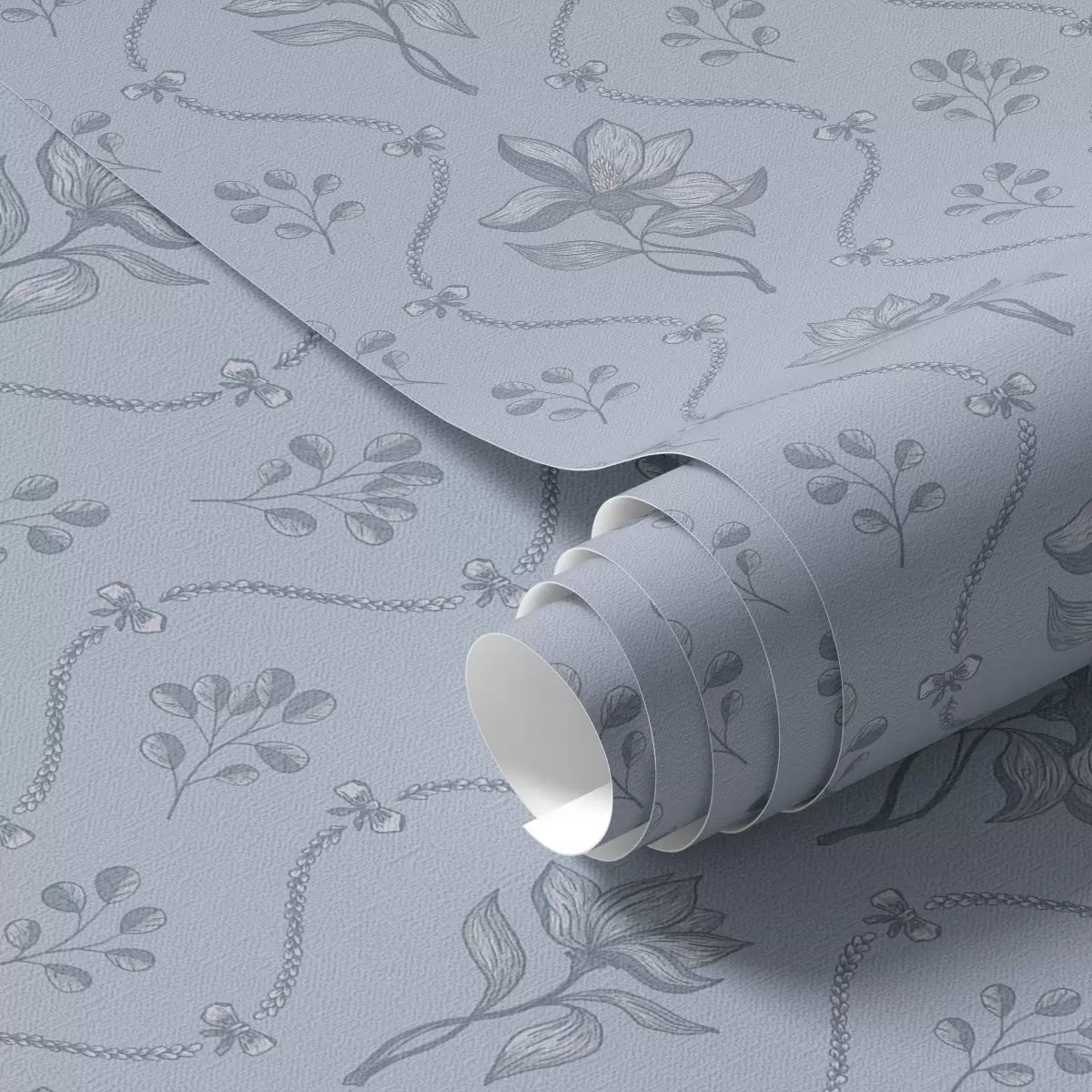 Tapeta Мало цвеће и траке у сиво-плавој палети бр. a00808v2