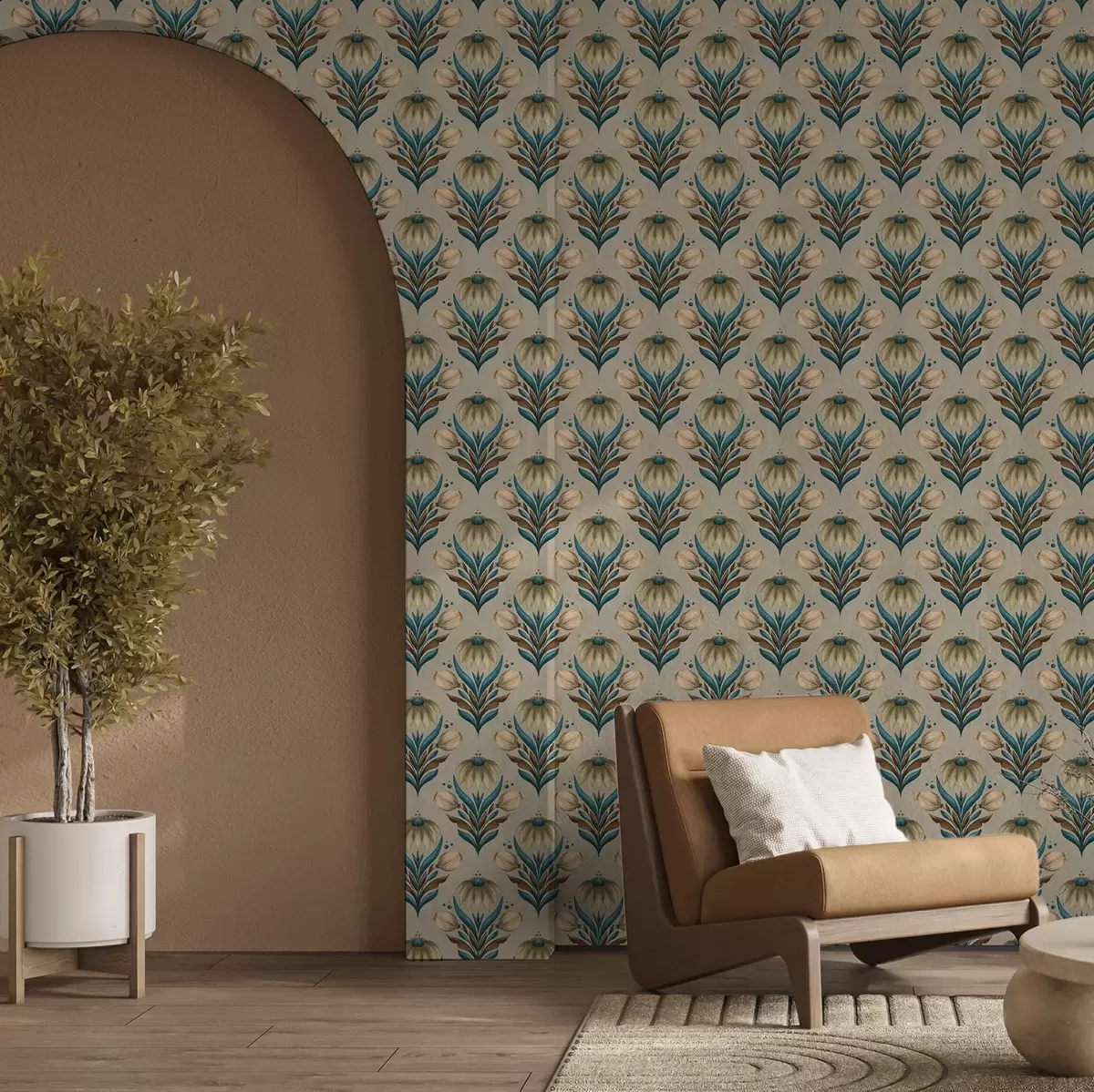 Tapeta Симетрични цветни орнамент у топлим тоновима бр. a00812