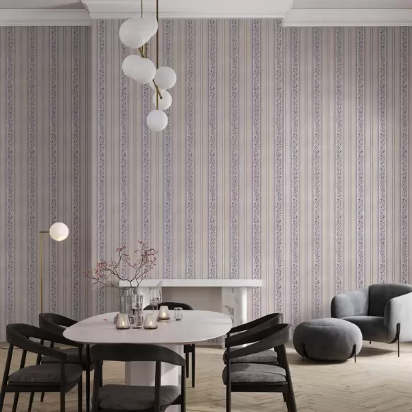 Tapeta Вертикалне пруге са вињетама лаванде, топла беж боја бр. a00813