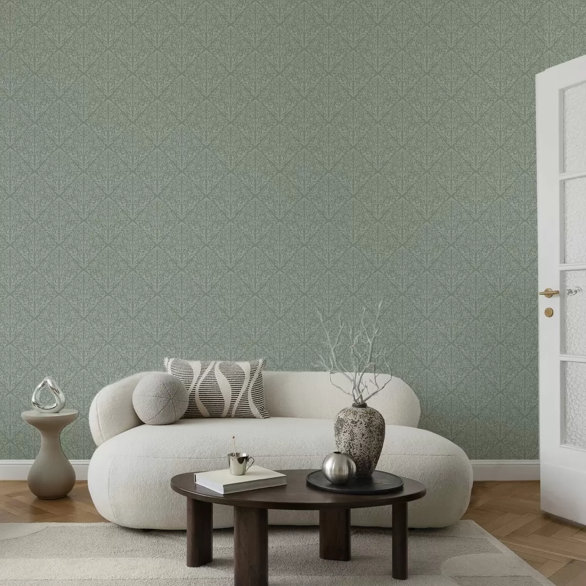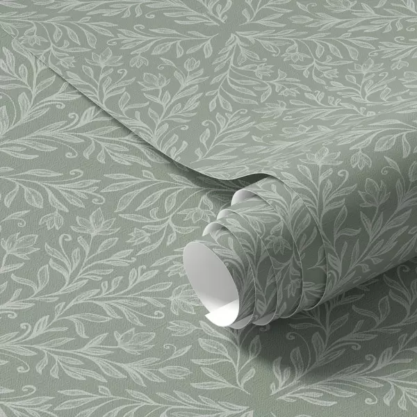 Tapeta Ботанички дамаск на менто-маслинастој позадини бр. a00815