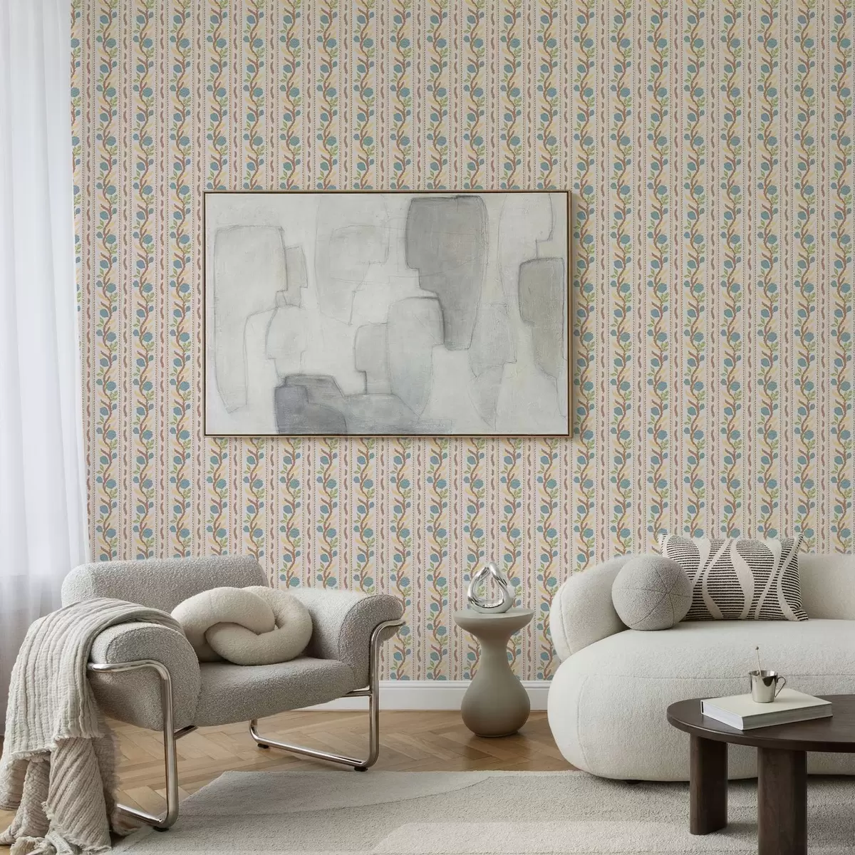 Tapeta Вертикалне пруге букета са плавим цвећем на топлом тлу бр. a00816v3