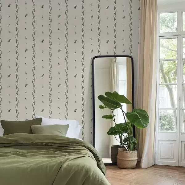 Tapeta Ретки зелени изданци у вертикалном ритму, кремасто тло бр. a00818