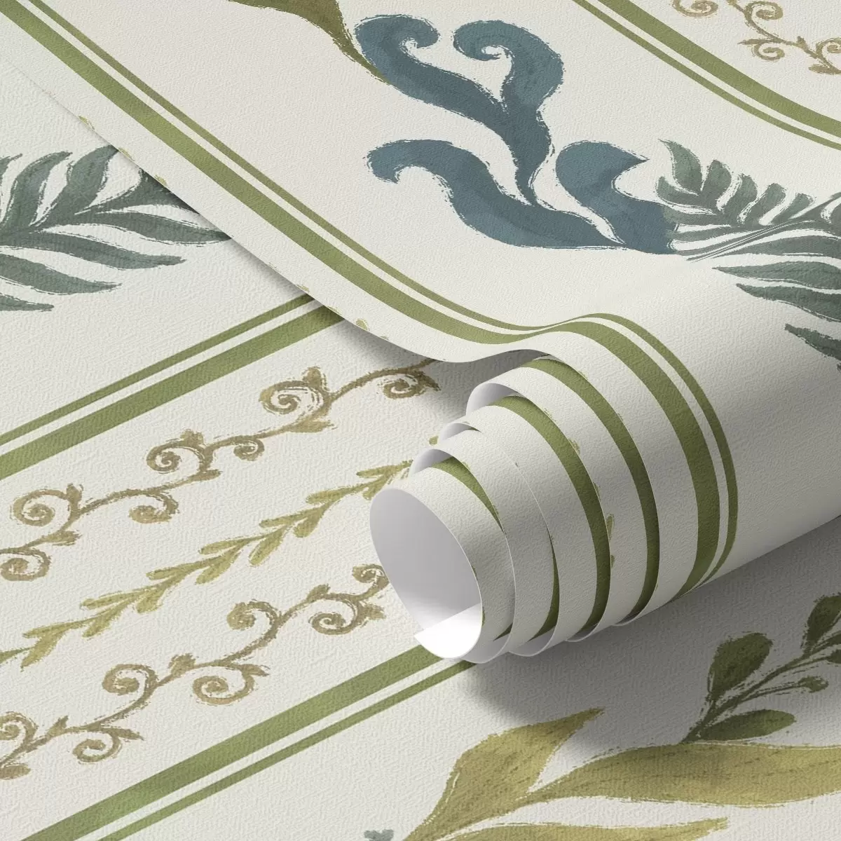 Tapeta Пруге са орнаментом у облику свитка и великим гранама у зеленој боји бр. a00823