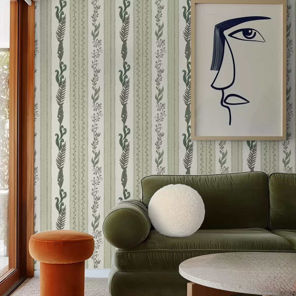 Tapeta Пруге са гранама у зеленим и сивим нијансама, меки контраст бр. a00824
