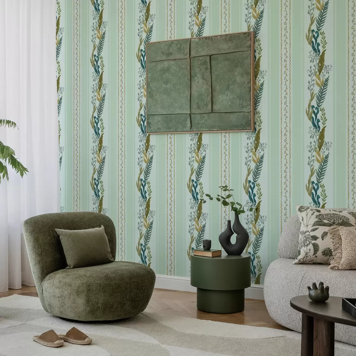 Tapeta Широке пруге са сликаним гранчицама на мекој менти бр. a00825v1