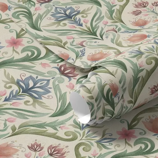 Tapeta Симетрични цветни орнамент, теракота и зелена бр. a00827