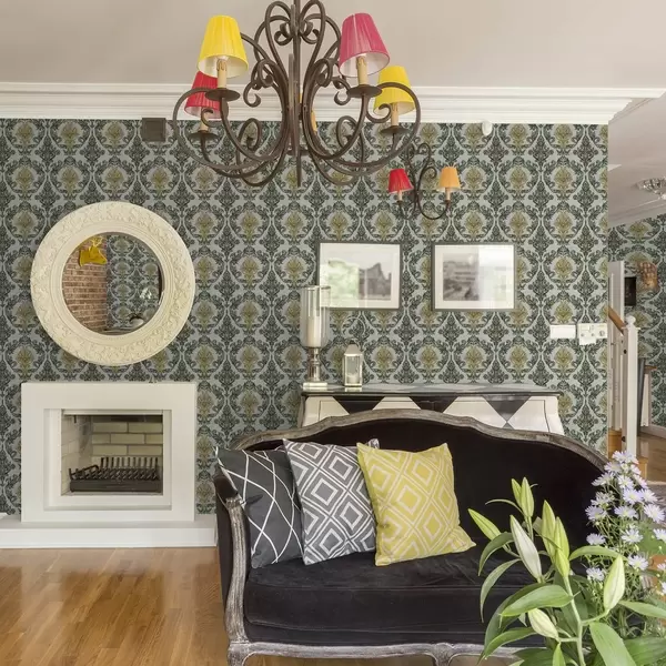 Tapeta Дамаск са зеленим свицима на светлој подлози бр. a00828v1