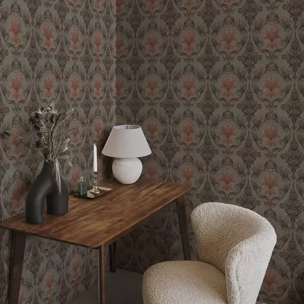 Tapeta Теракотни дамаск на пригушеном маслинастом поду бр. a00828v3
