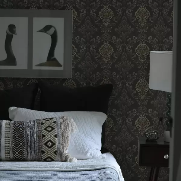 Tapeta Дамаск на тамној графитној подлози, маслинасто-окер акценти бр. a00828v5