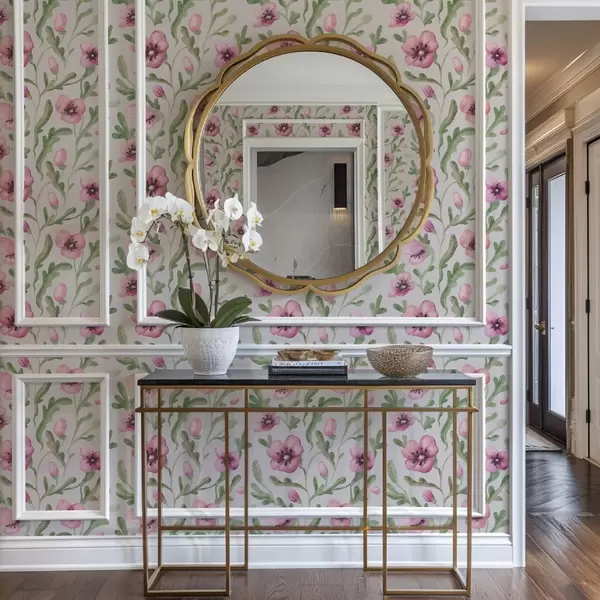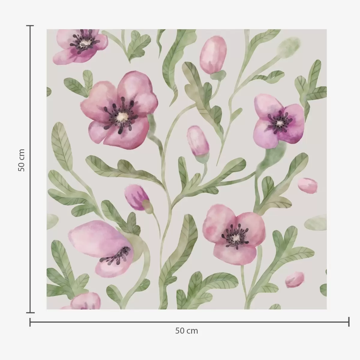 Tapeta Нежни ружичасти макови са листовима у техници акварела бр. a00830