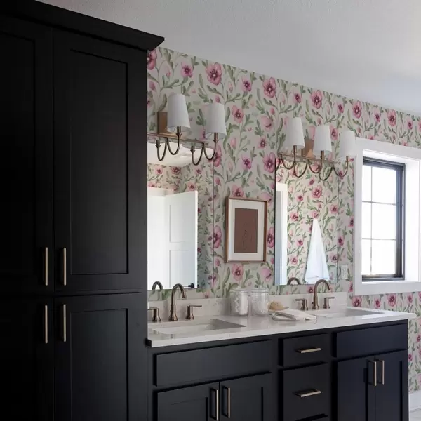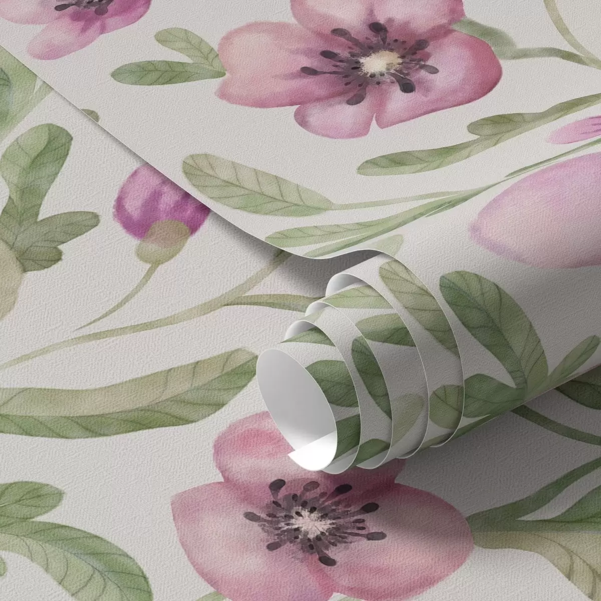 Tapeta Нежни ружичасти макови са листовима у техници акварела бр. a00830