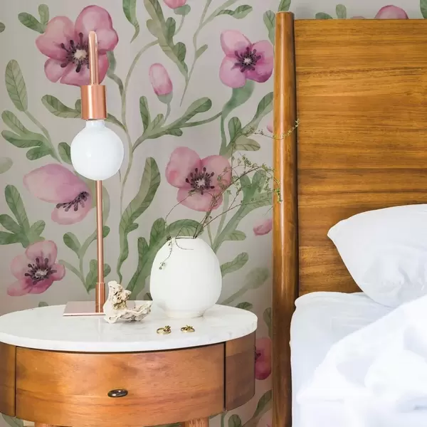 Tapeta Нежни ружичасти макови са листовима у техници акварела бр. a00830