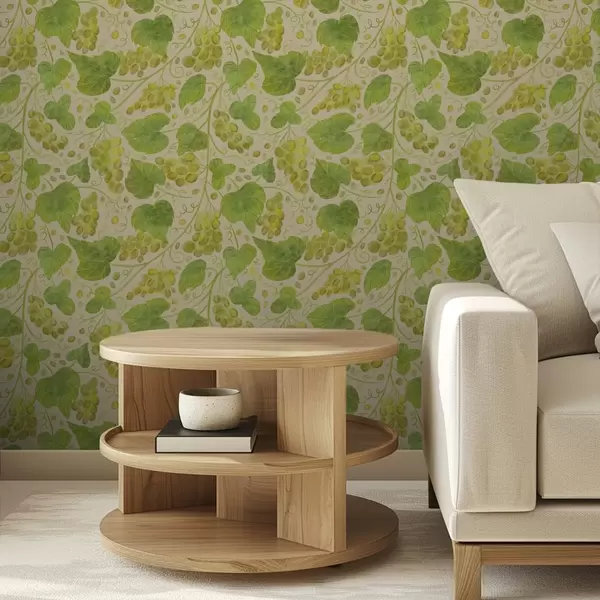 Tapeta Грожђе и зелено лишће на светлој позадини бр. a00834