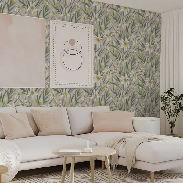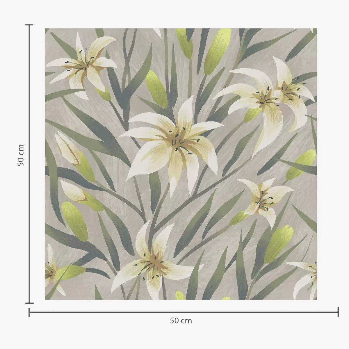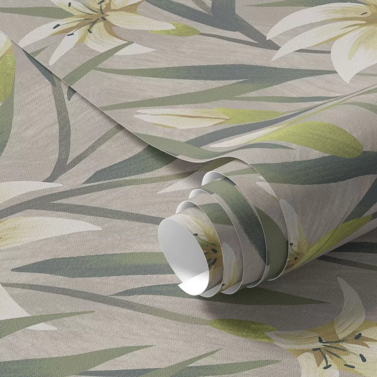 Tapeta Крем љиљани са листовима на сиво-беж позадини бр. a00837