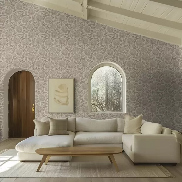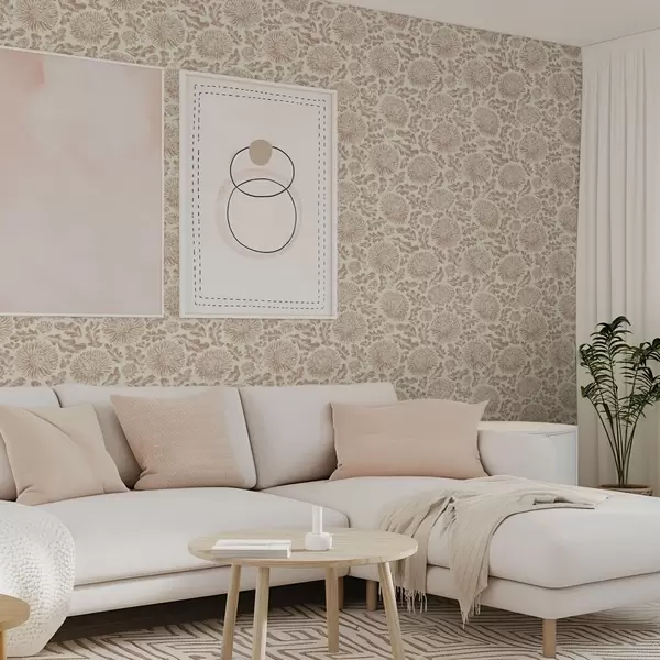 Tapeta Хризантеме и храстово лишће у мекој беж-смеђој боји бр. a00840