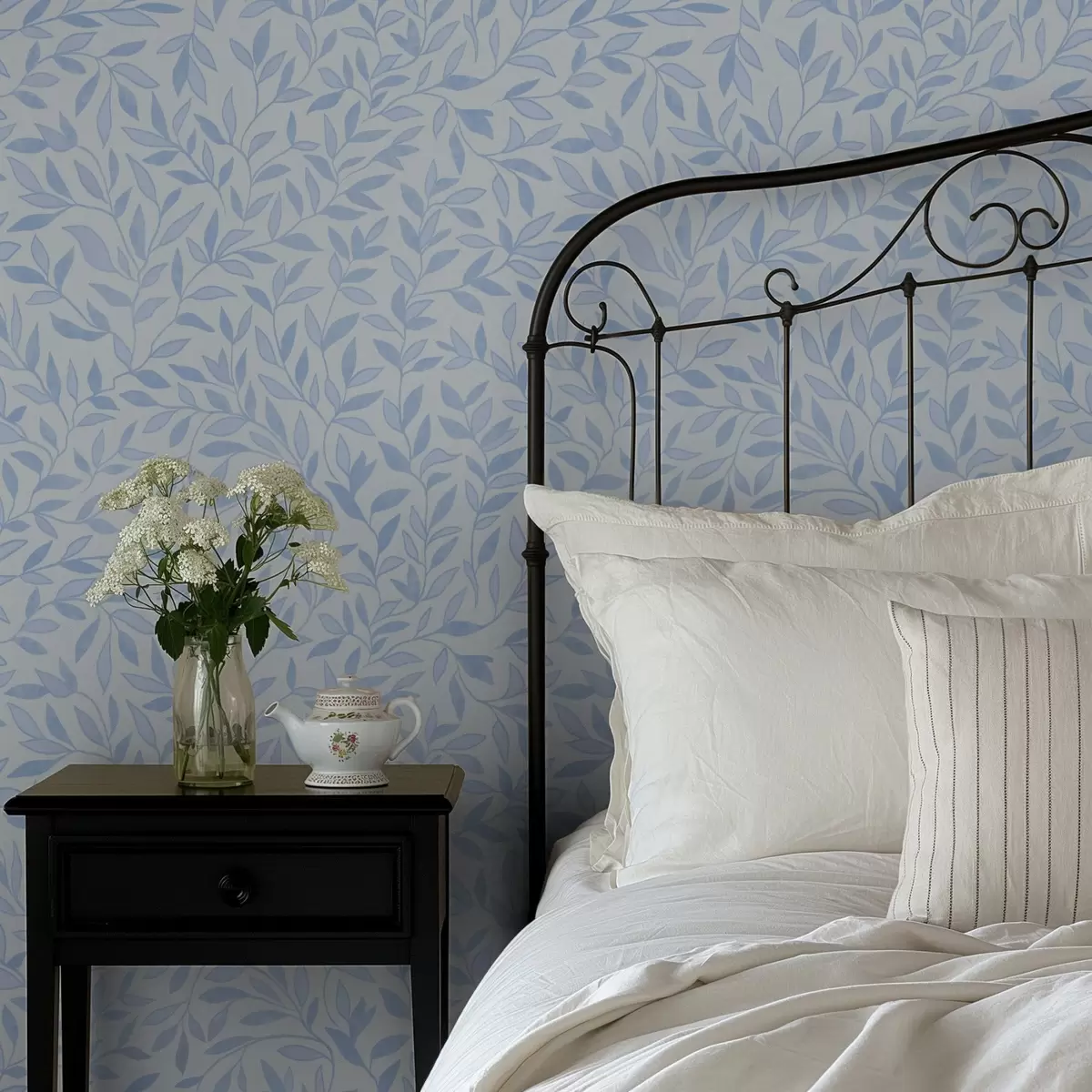 Tapeta Плаве гранчице са листовима на светлоплавој боји бр. a00842