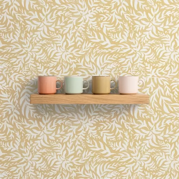 Tapeta Узорак белог лишћа на топлој окер боји, вртложни ритам бр. a00845