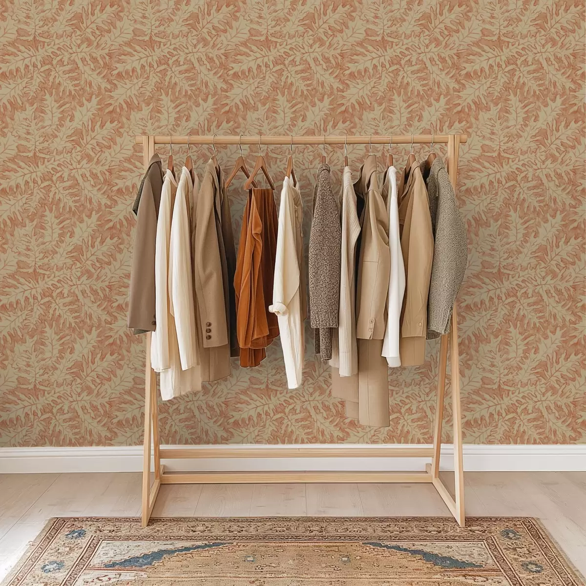 Tapeta Велики храстов листови у теракоти на кремастој подлози бр. a00846