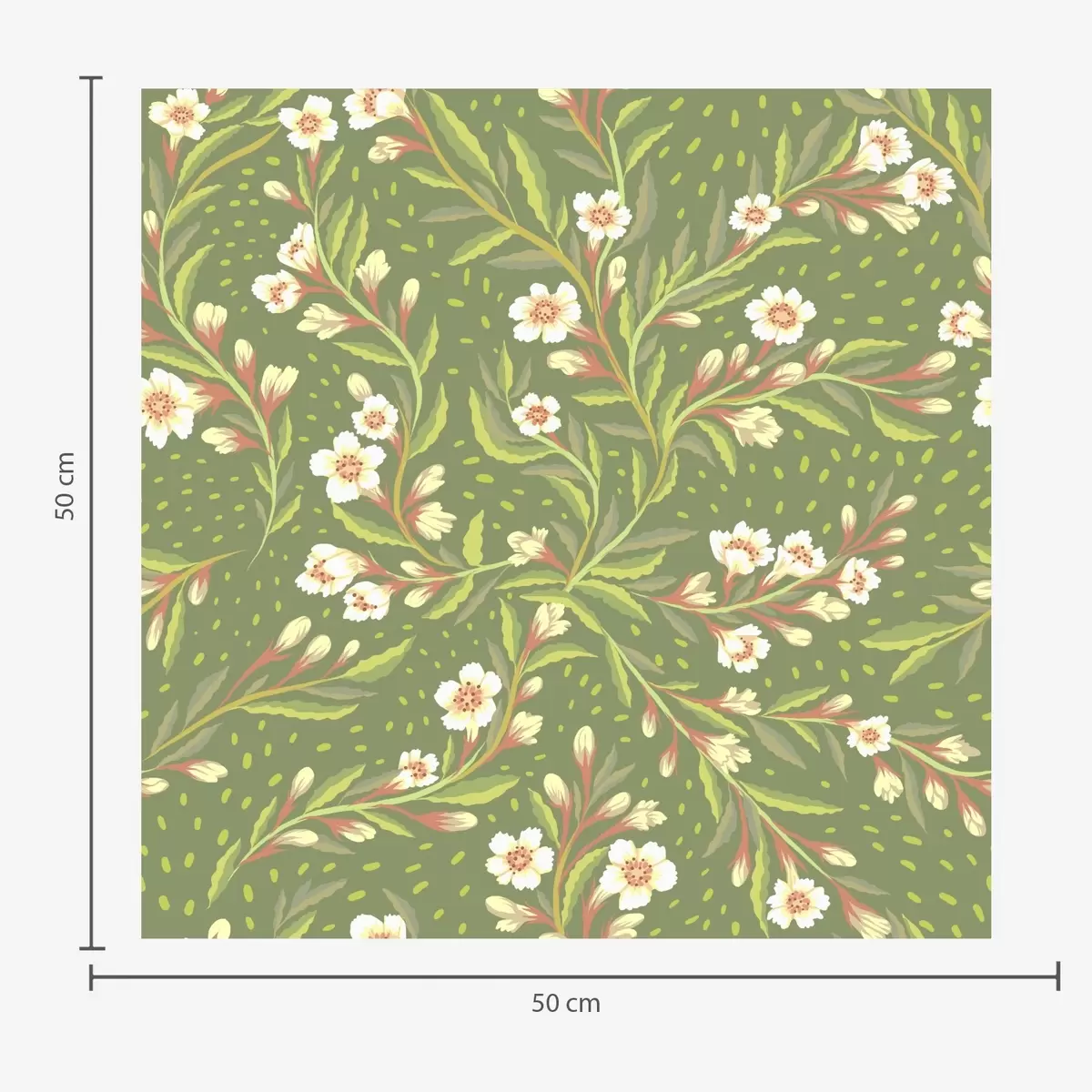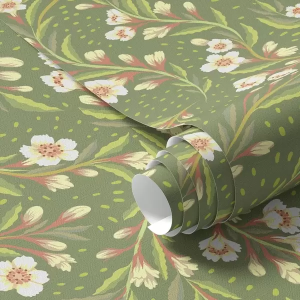 Tapeta Широке гране са кремастим цветовима на маслинастој позадини бр. a00850