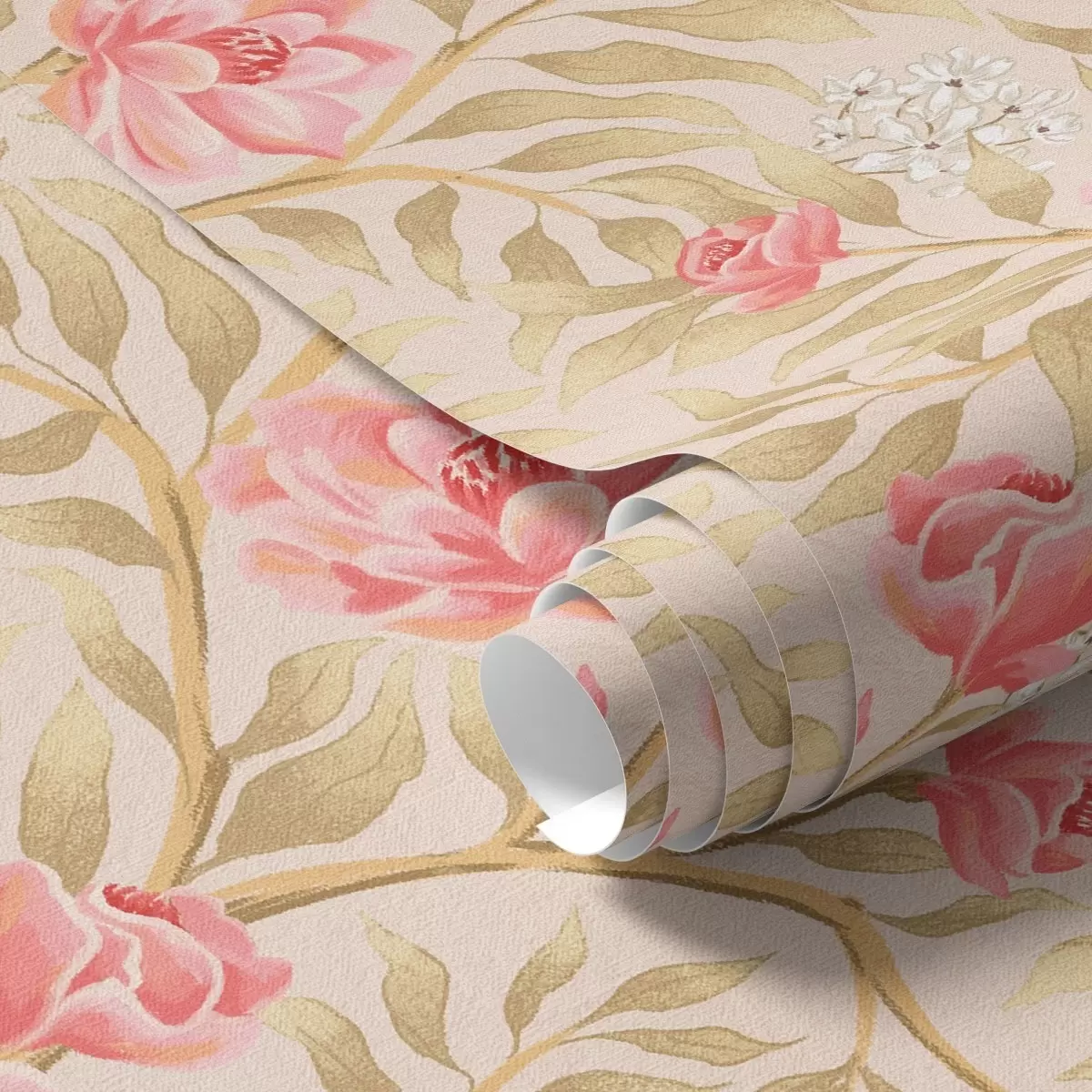 Tapeta Ружичасти цветови, бели цвет и окер лишће бр. a00855