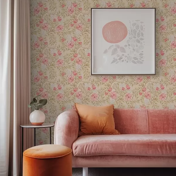 Tapeta Ружичасти цветови, бели цвет и окер лишће бр. a00855