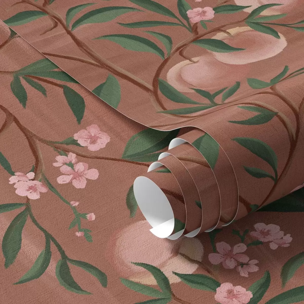 Tapeta Брескве на гранама са ружичастим цветом, теракотна земља бр. a00856