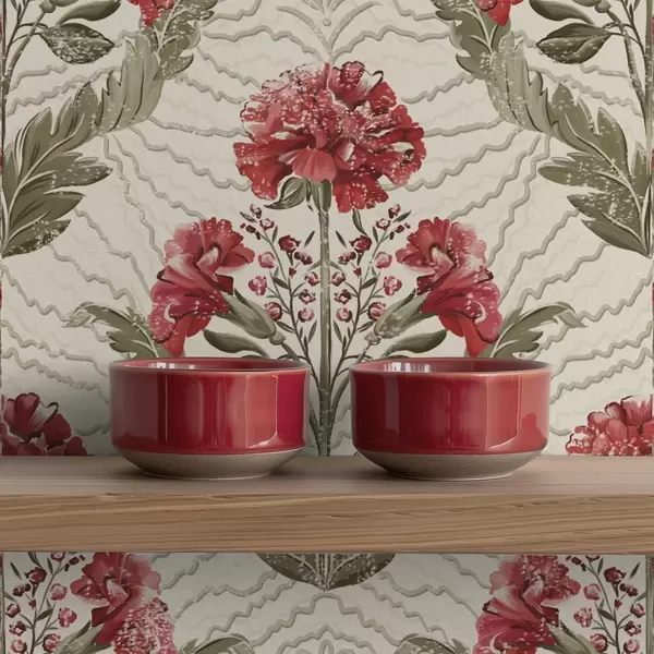 Tapeta Велики црвени божури са графичком позадином, кремаста основа бр. a00857