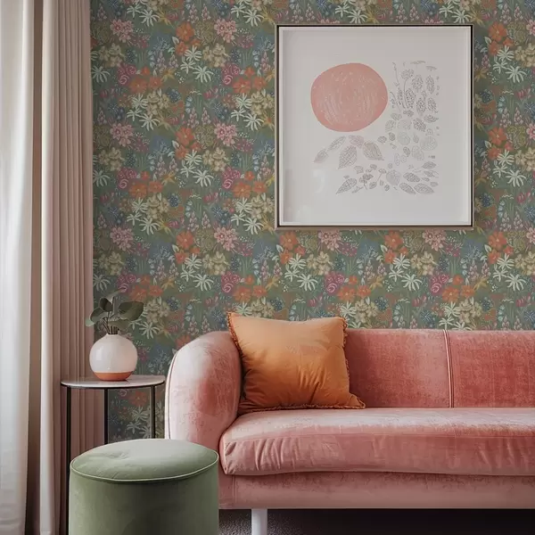 Tapeta Сликовито ливадско цвеће на зеленој жалфији бр. a00864