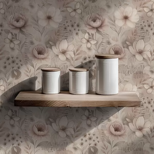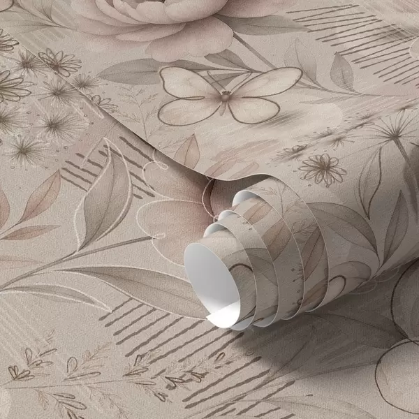Tapeta Сепија беж цветни дезени са лептирима и линеарним акцентима бр. a00870