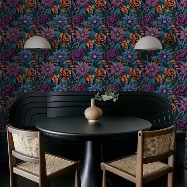 Tapeta Живахни цветни дезени у нијанси драгуља на тамноплавој боји бр. a00871