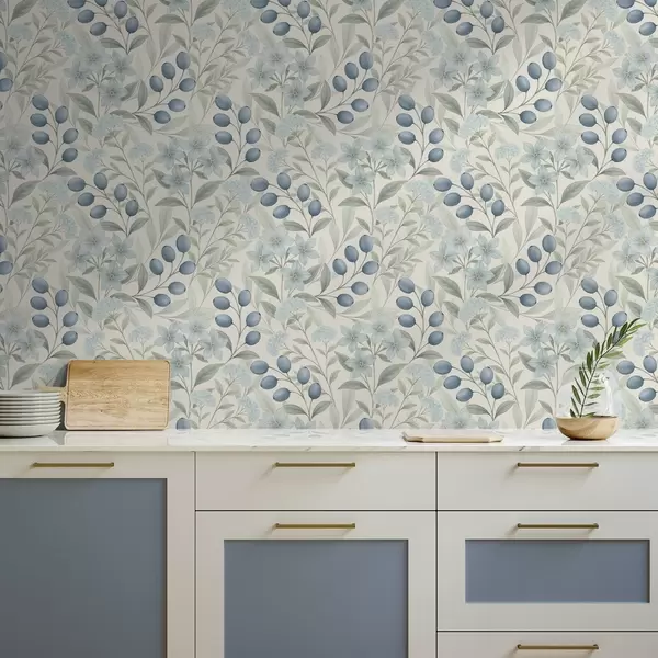 Tapeta Боровнице и светло цвеће на слоновачи бр. a00872