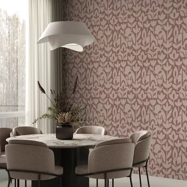 Tapeta Геометријске цветне силуете у теракоти и крем боји бр. a00875v2