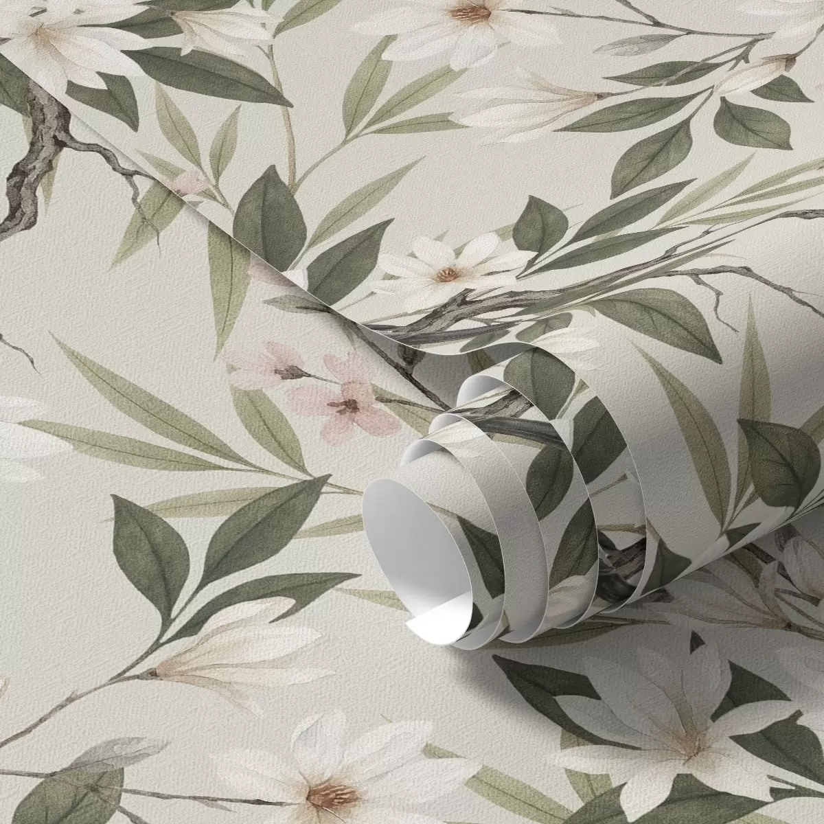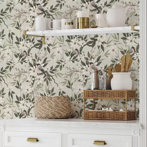 Tapeta Зебе са белим грудима на гранама са кремастим цветовима бр. a00889