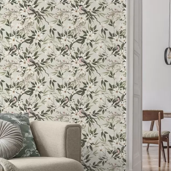 Tapeta Зебе са белим грудима на гранама са кремастим цветовима бр. a00889