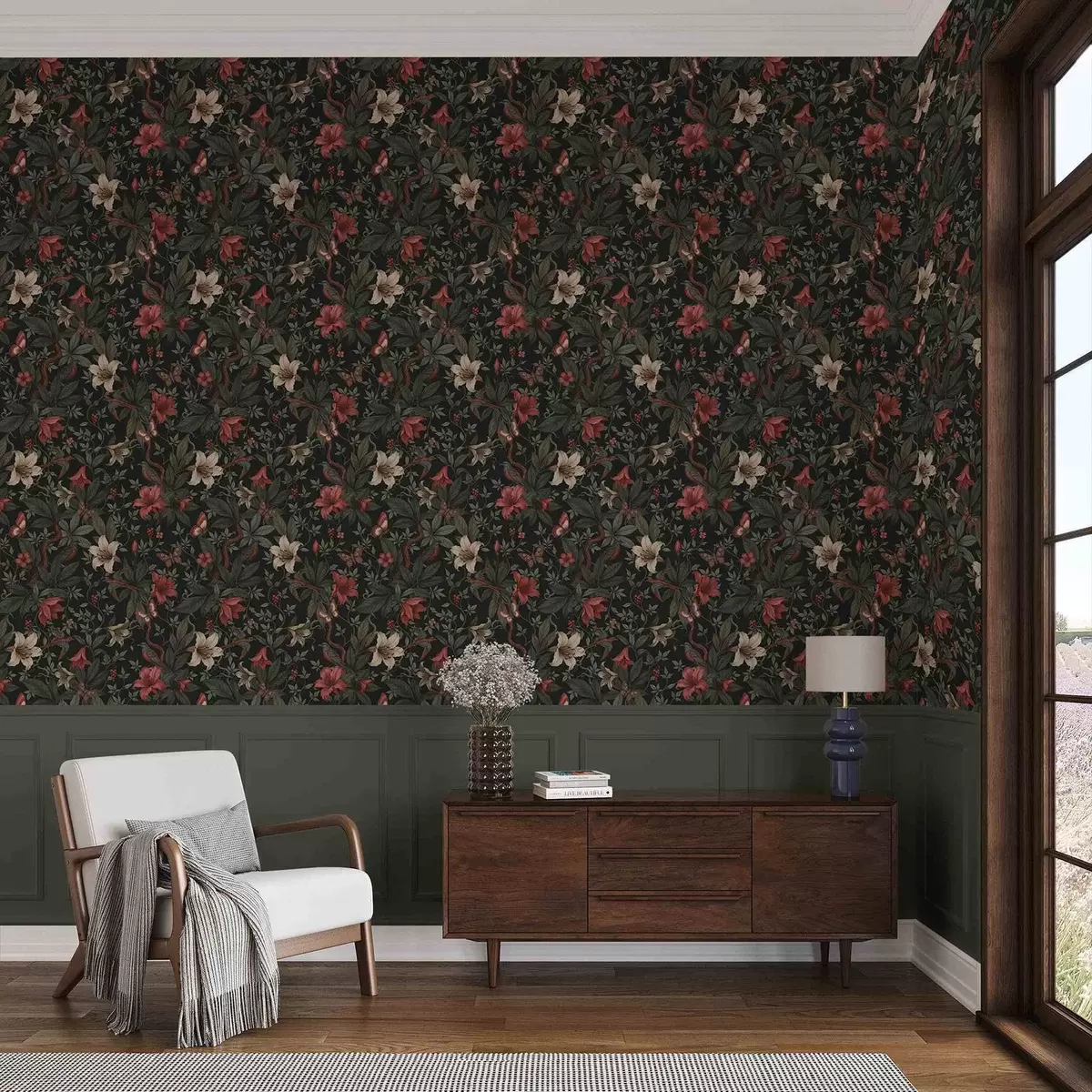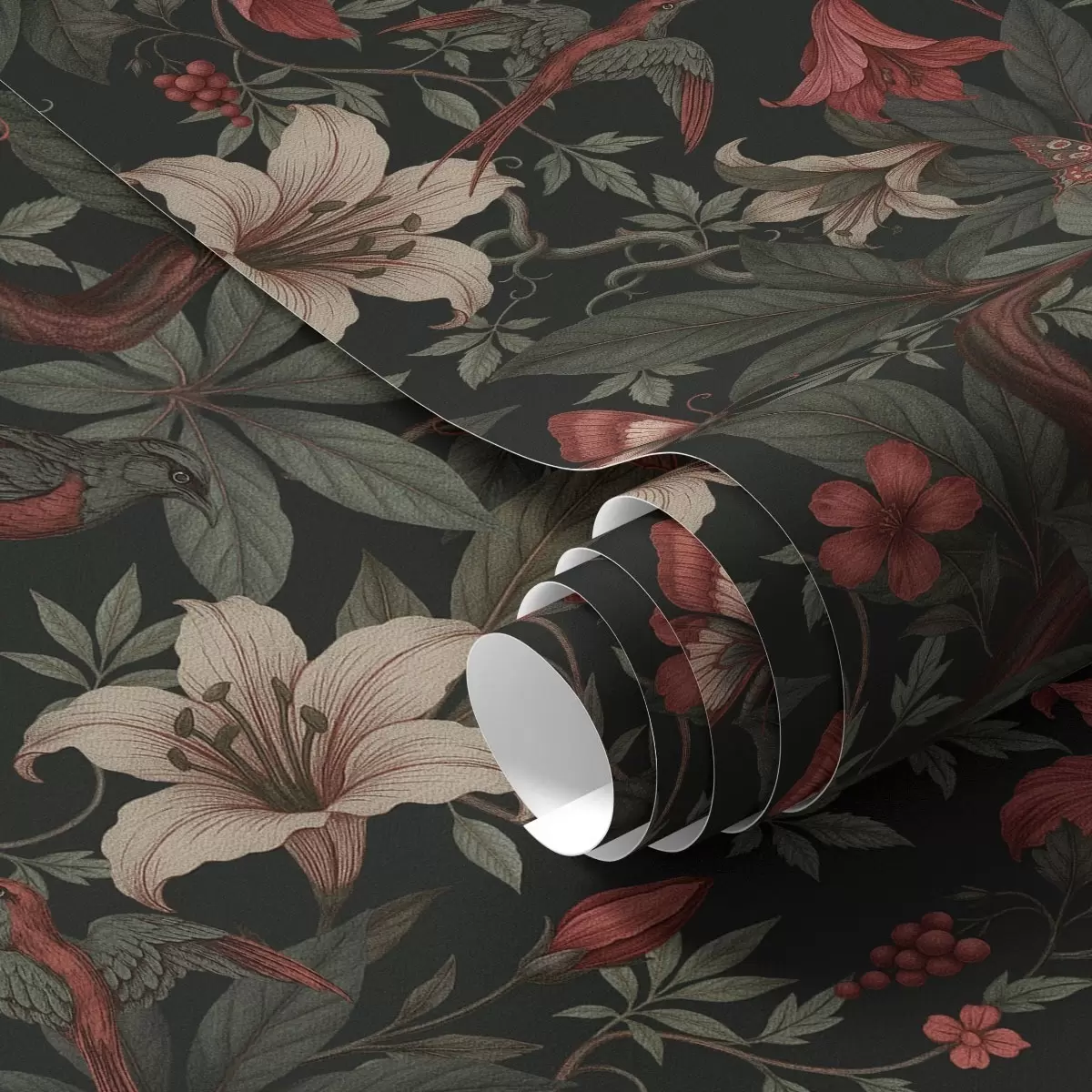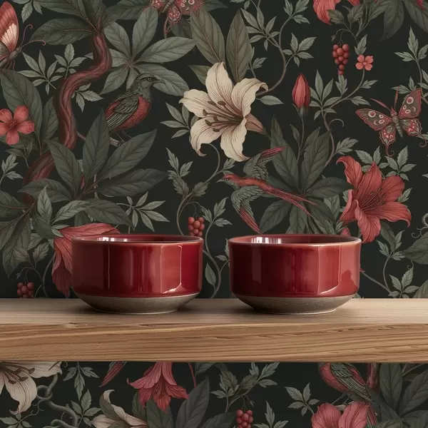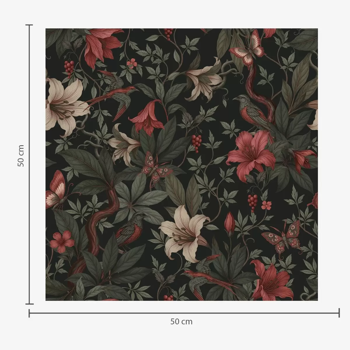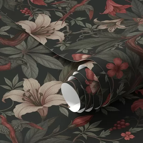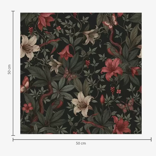 Tapeta Тамни џунгласти цветови са птицама и лептирима бр. a00895