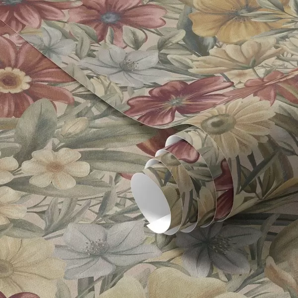 Tapeta Винтажно ливадско цвеће у топлим жутим, црвеним и жалфијским нијансама бр. a00906