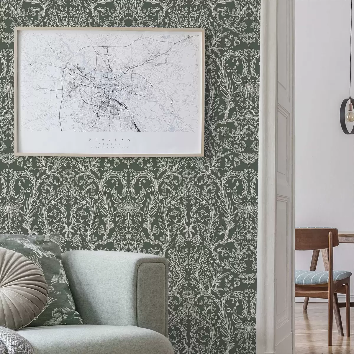 Tapeta Линеарни цветни узорак на тамнозеленој позадини бр. a00929