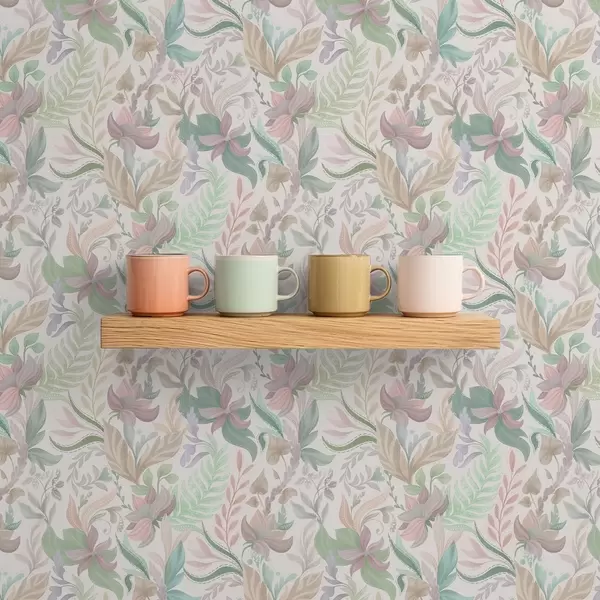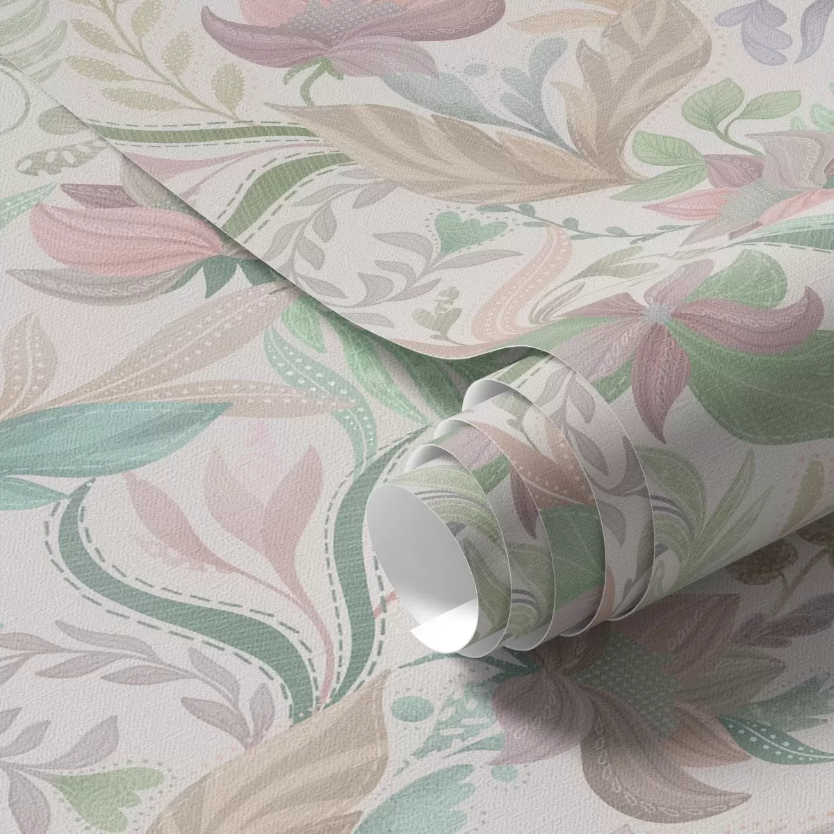 Tapeta Нежно пастелно цвеће и лишће на светлој позадини бр. a00931