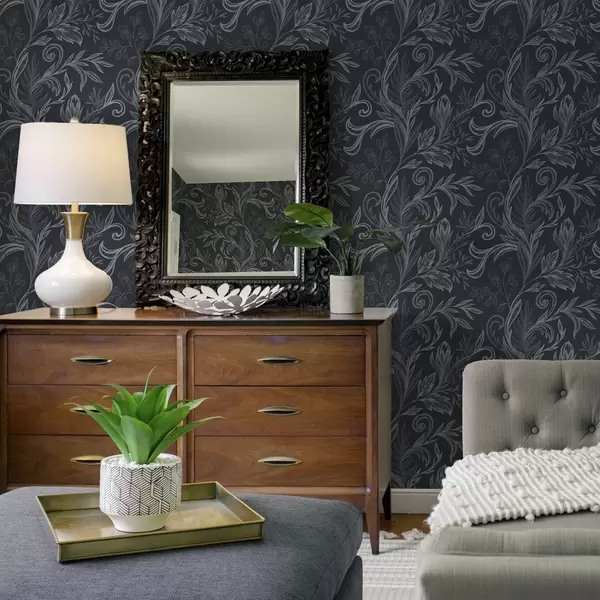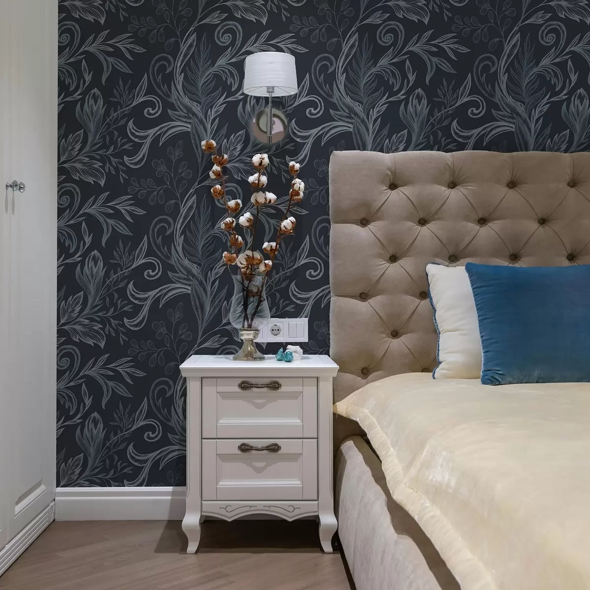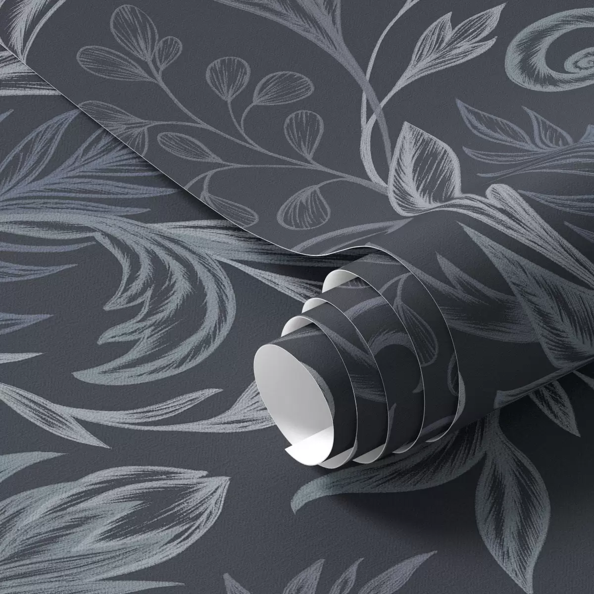 Tapeta Тамно индиго увијени листови са ручно цртаним сенкама бр. a00935