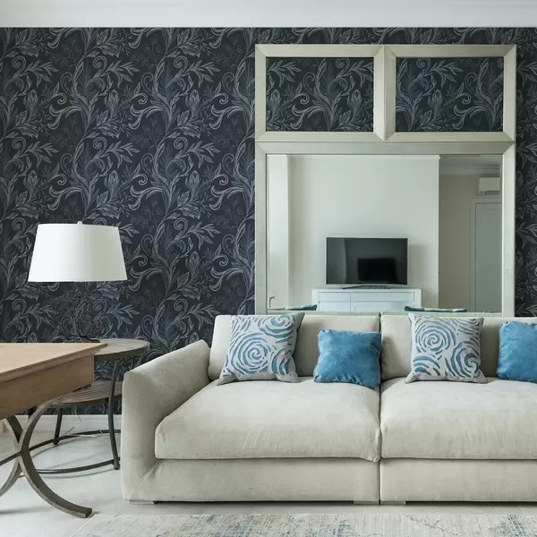 Tapeta Тамно индиго увијени листови са ручно цртаним сенкама бр. a00935