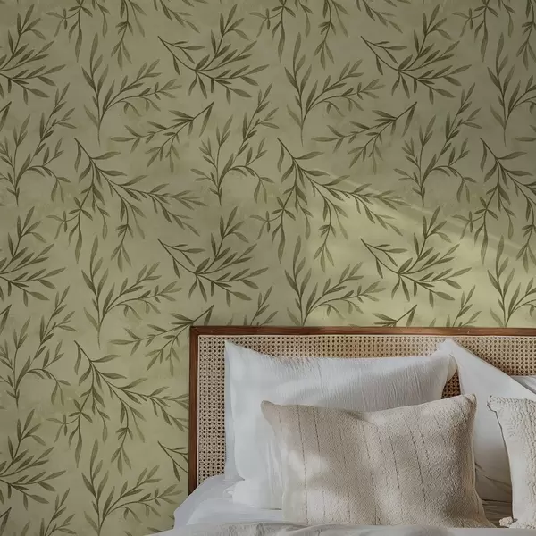 Tapeta Гранчице маслине на пригушеном жуто-зеленом текстурираном тлу бр. a00936