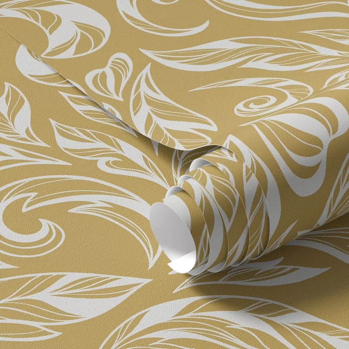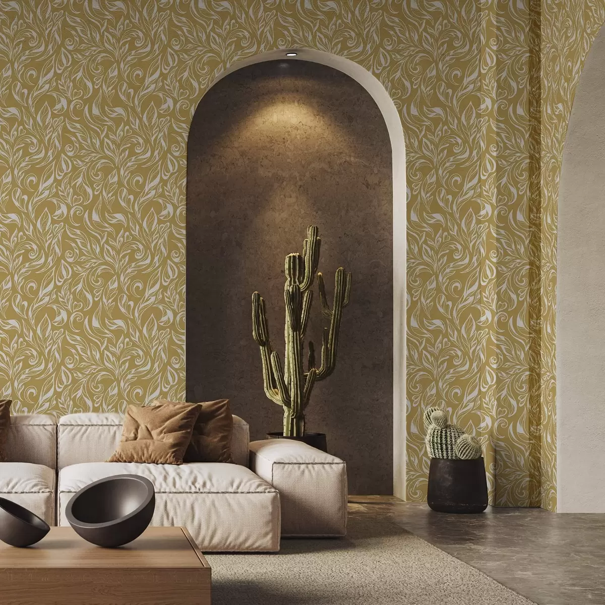 Tapeta Крем-бели лиснати орнамент на топлој окер позадини бр. a00940v1