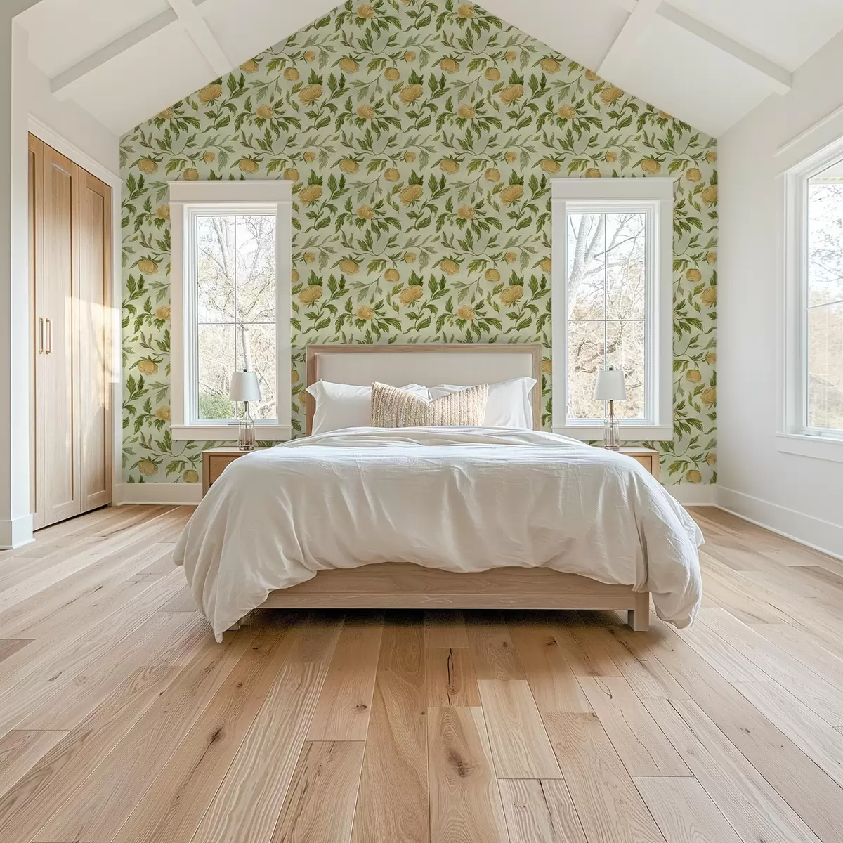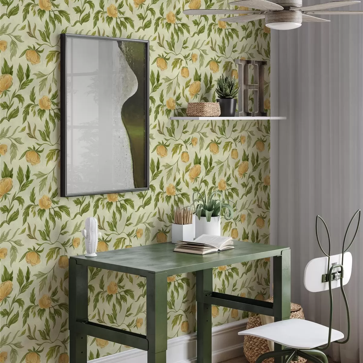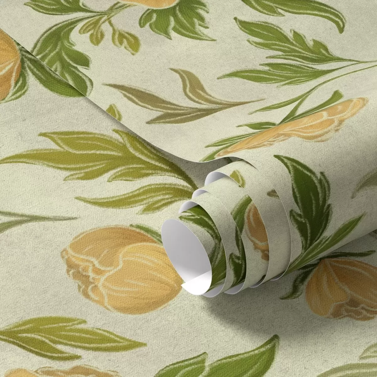 Tapeta Жути божури и лишће на мекој светлозеленој позадини бр. a00942