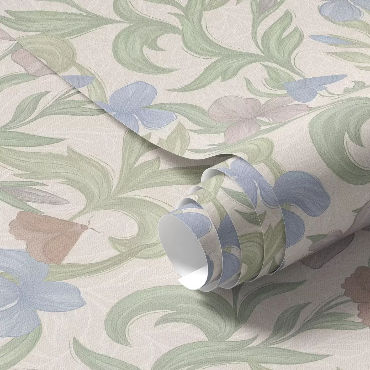 Tapeta Пастелно цвеће и лептири на кремастој позадини бр. a00944