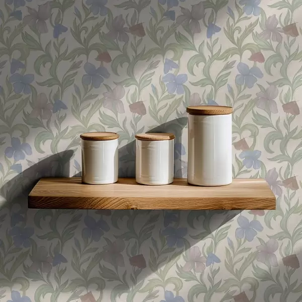 Tapeta Пастелно цвеће и лептири на кремастој позадини бр. a00944